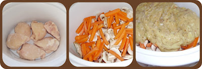 I love crock pot recipes. A little prep ahead of time and then BAM...dinner is ready! This recipe is creamy, but has fantastic flavor from the Italian dressing seasoning packets. I used cream of mushroom and cream of celrey soups, but you can use any two "cream of" soups that you want.